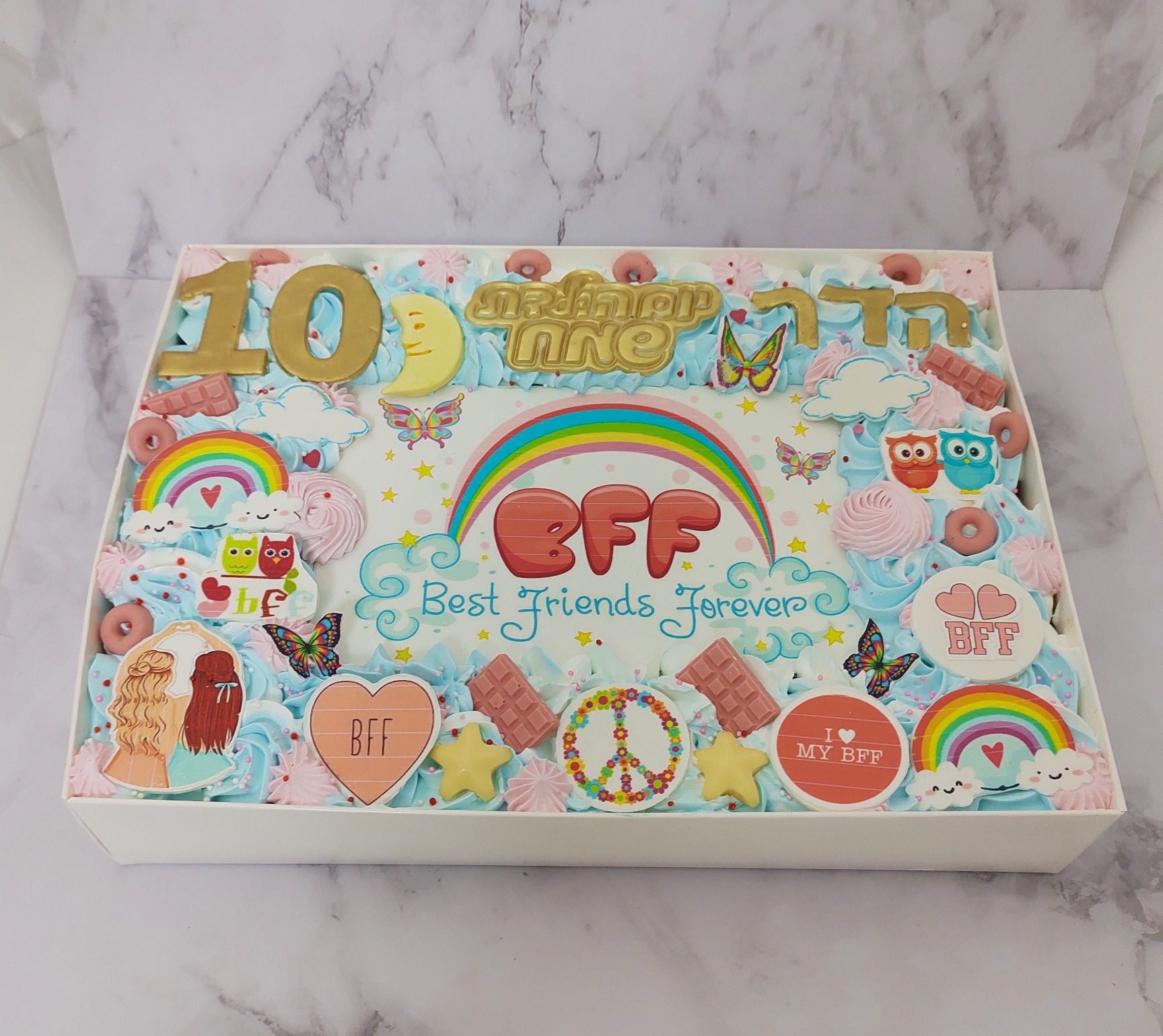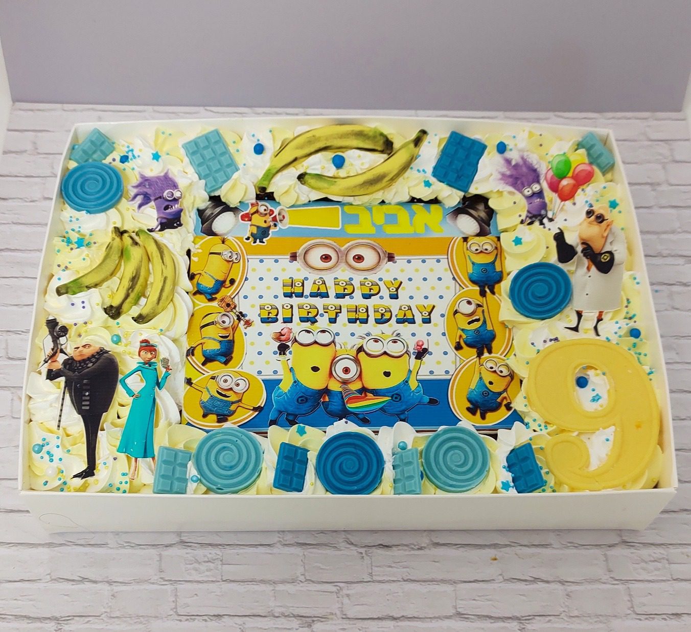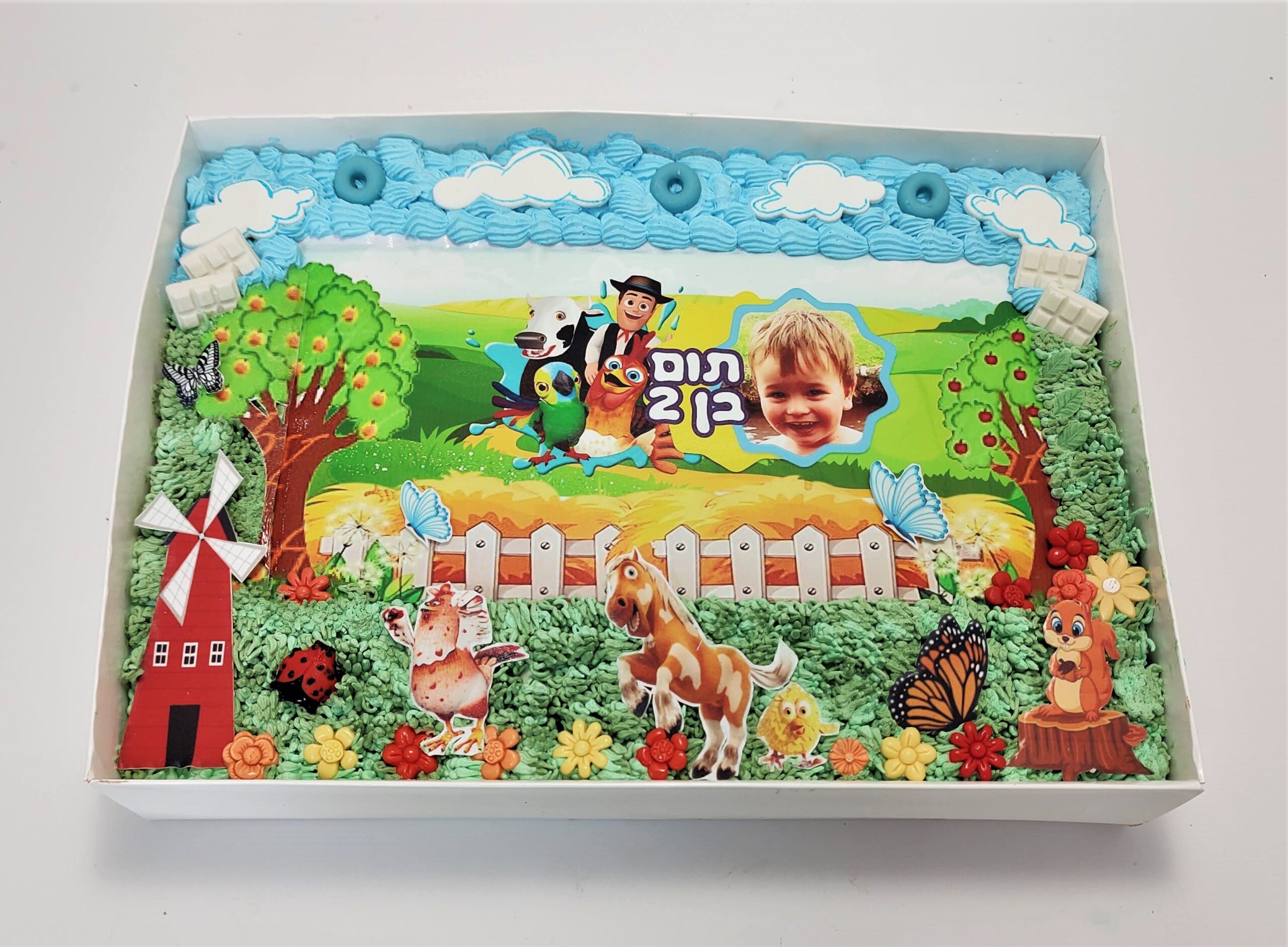 כולל: דף סוכר עם נושא לבחירתכם. ניתן להוסיף שם וגיל. קישוטים עם בצק סוכר ושוקולד צימקאו. מידה:25×35